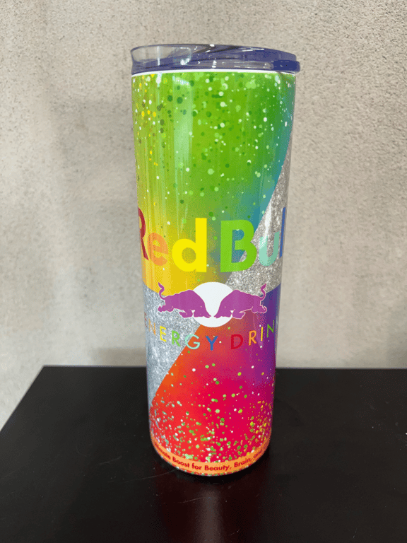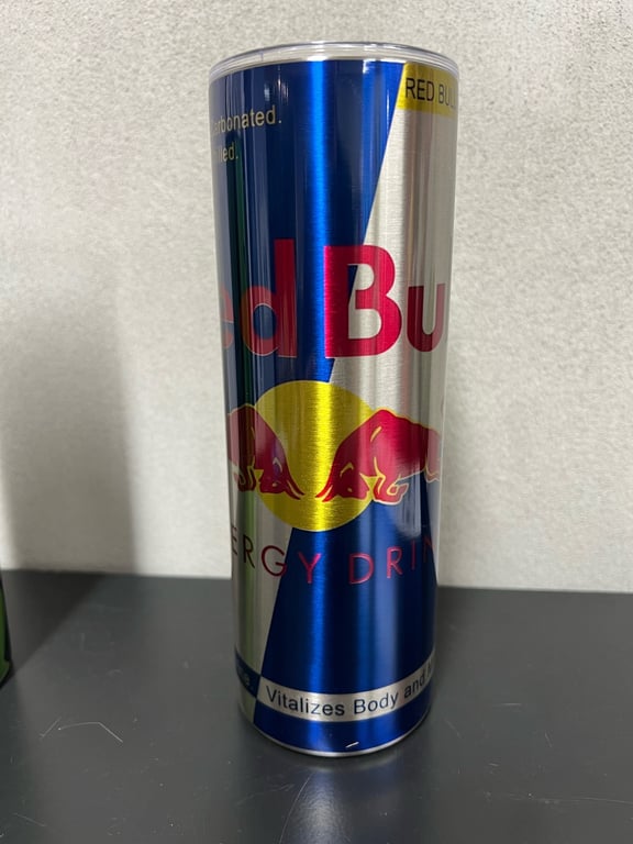 Dåse med Monster Energy Zero Ultra energidrik stående på græs med grønt, sløret baggrund af træer.